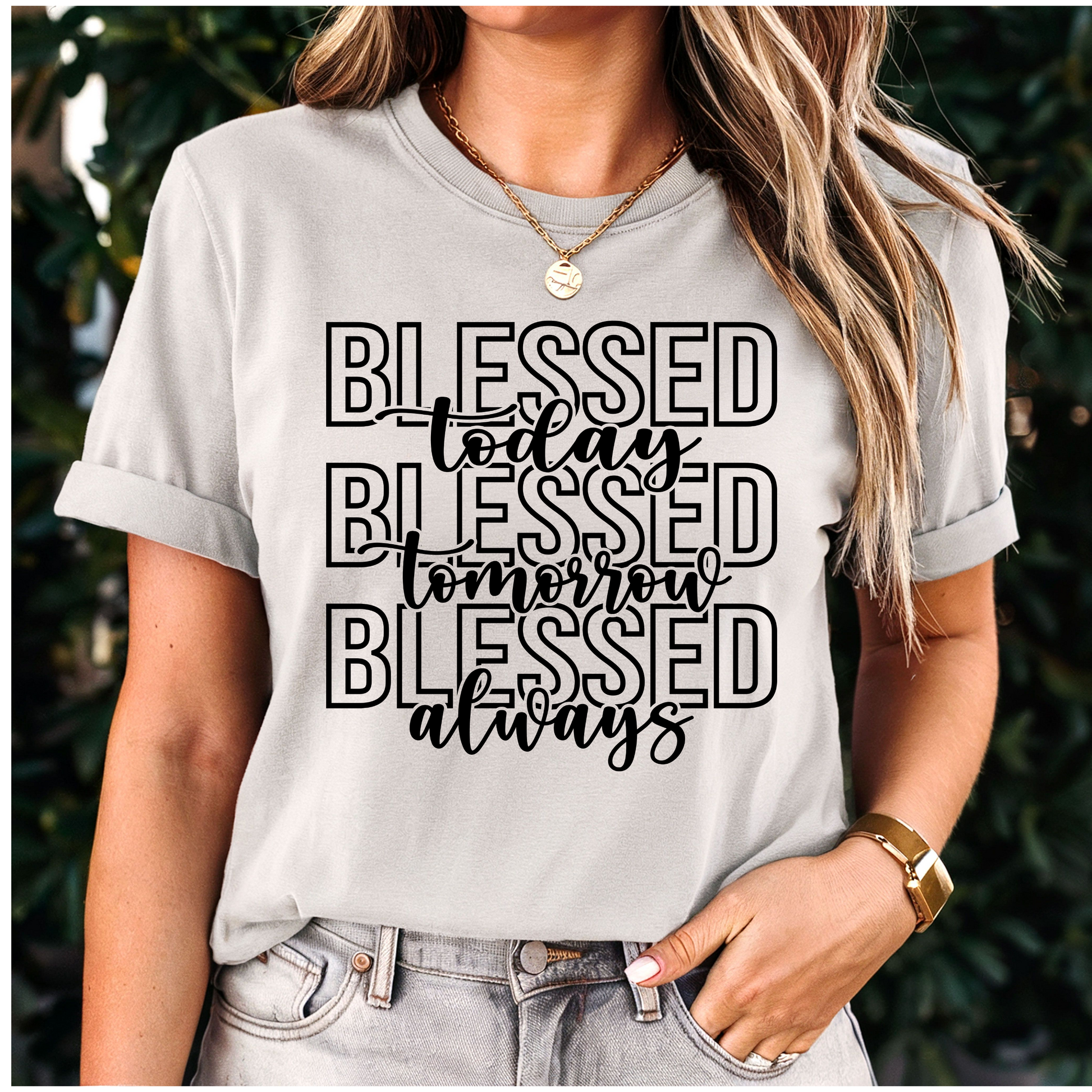 Spread positivity and make a bold statement with this, "Blessed Always," T-Shirt. Its relaxed fit and soft fabric provides all-day comfort. Show your positive outlook on life and inspire others with this must-have tee.