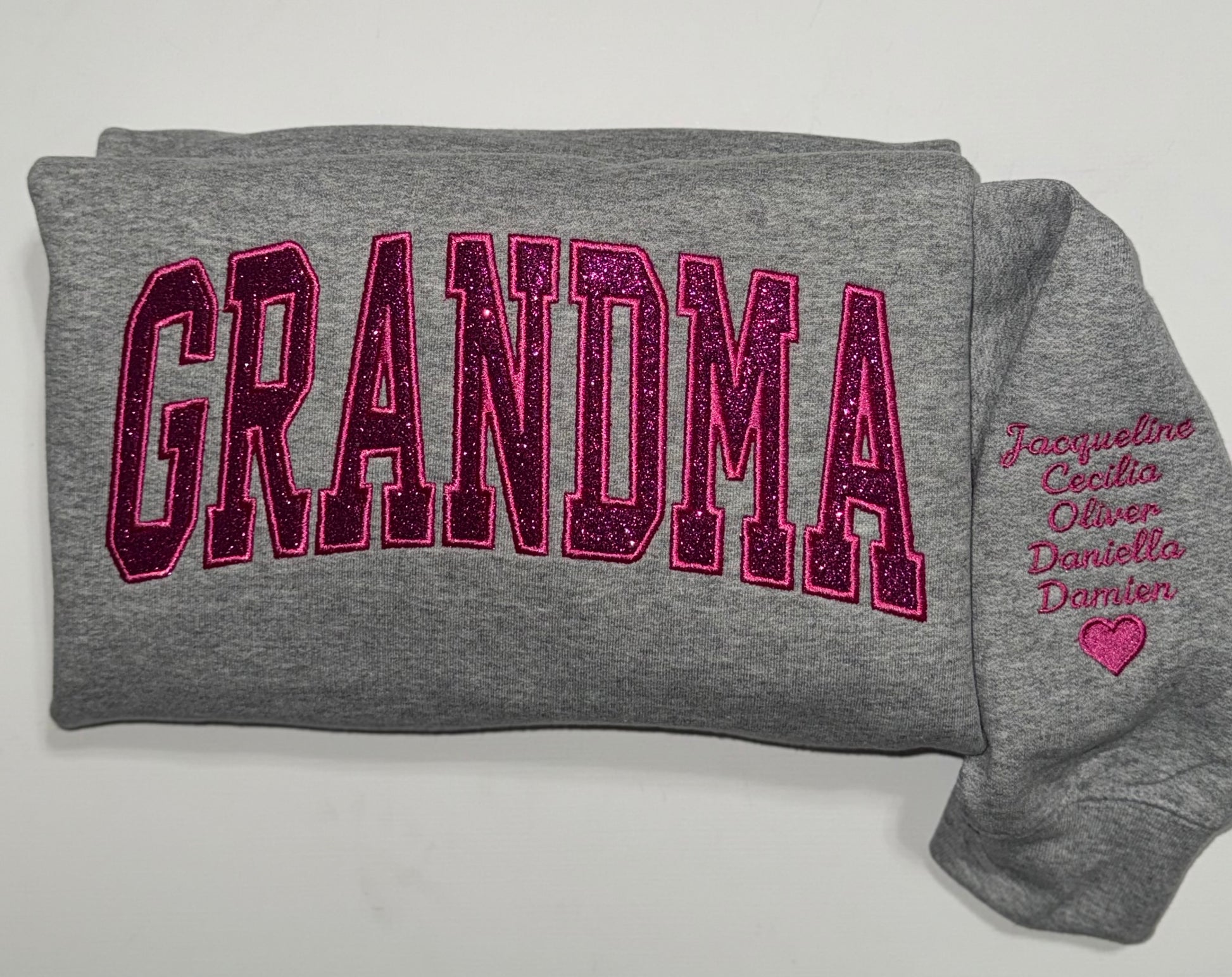 Custom Grandma Embroidered Sweatshirt with Names on Sleeves | Personalized Gift for Grandma, Nana, Mama